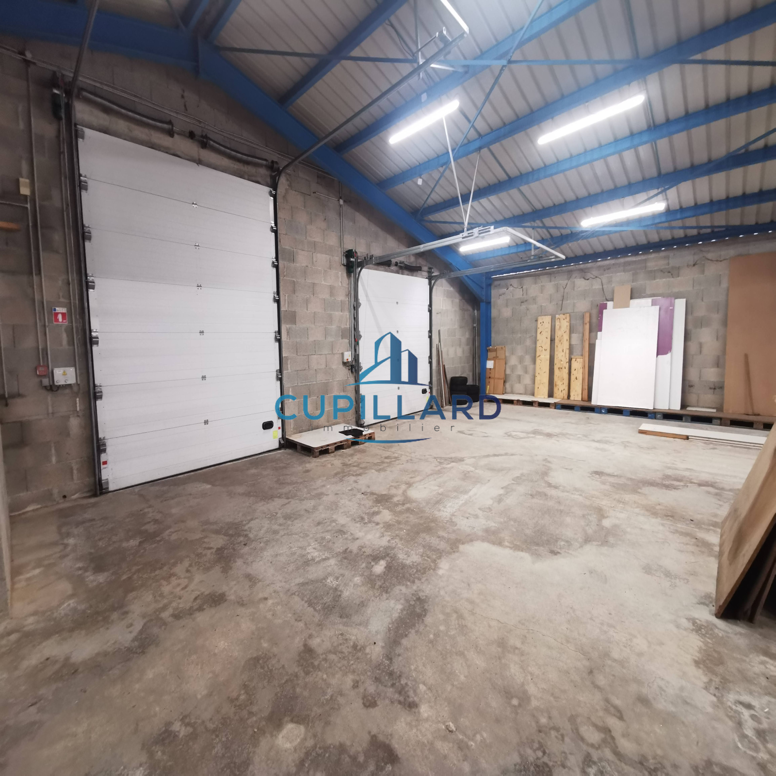 Le site dispose d’une baie de chargement avec portes sectionnelles, permettant l’accès aux camions et poids lourds jusqu’à 44 tonnes, avec des aires de manœuvre fonctionnelles.