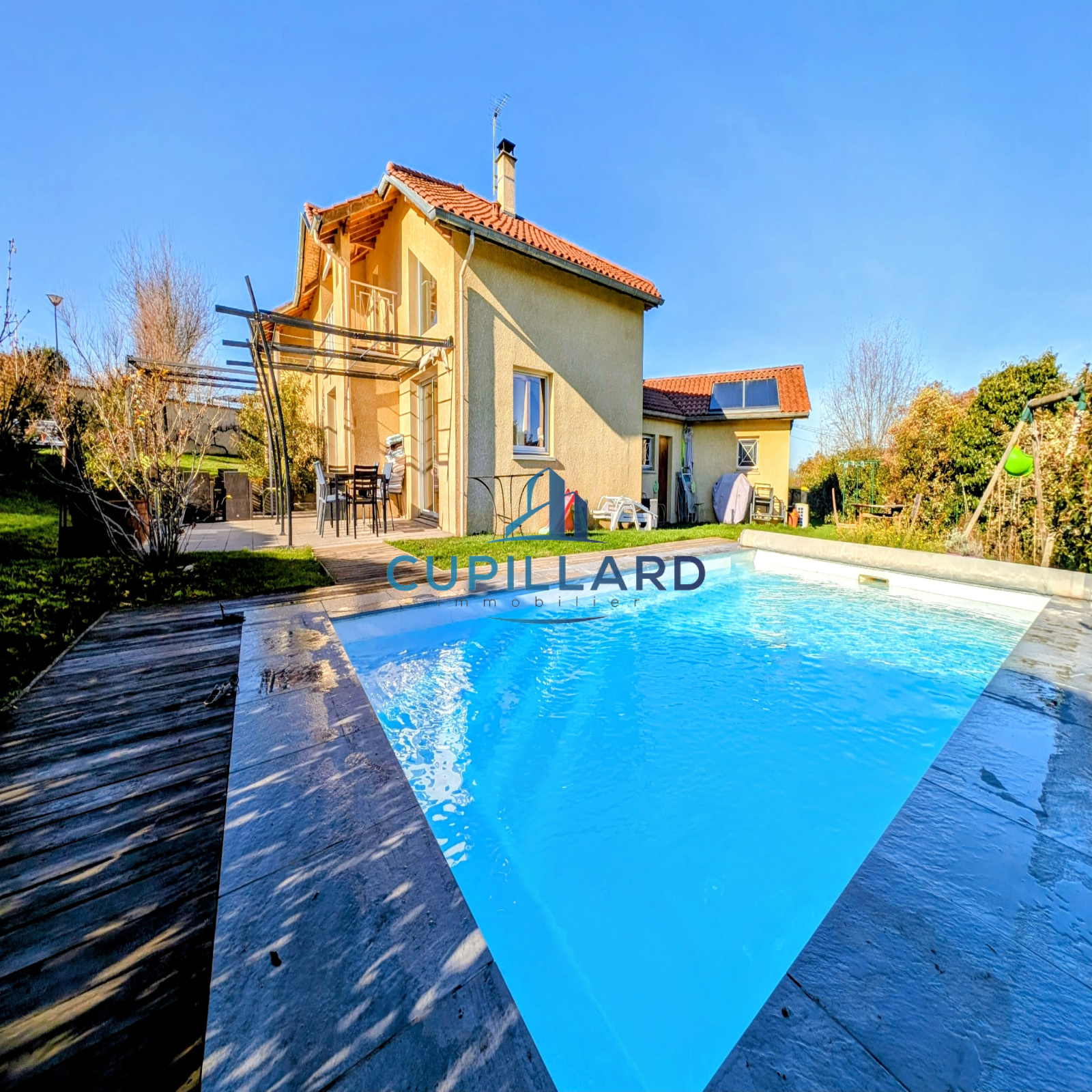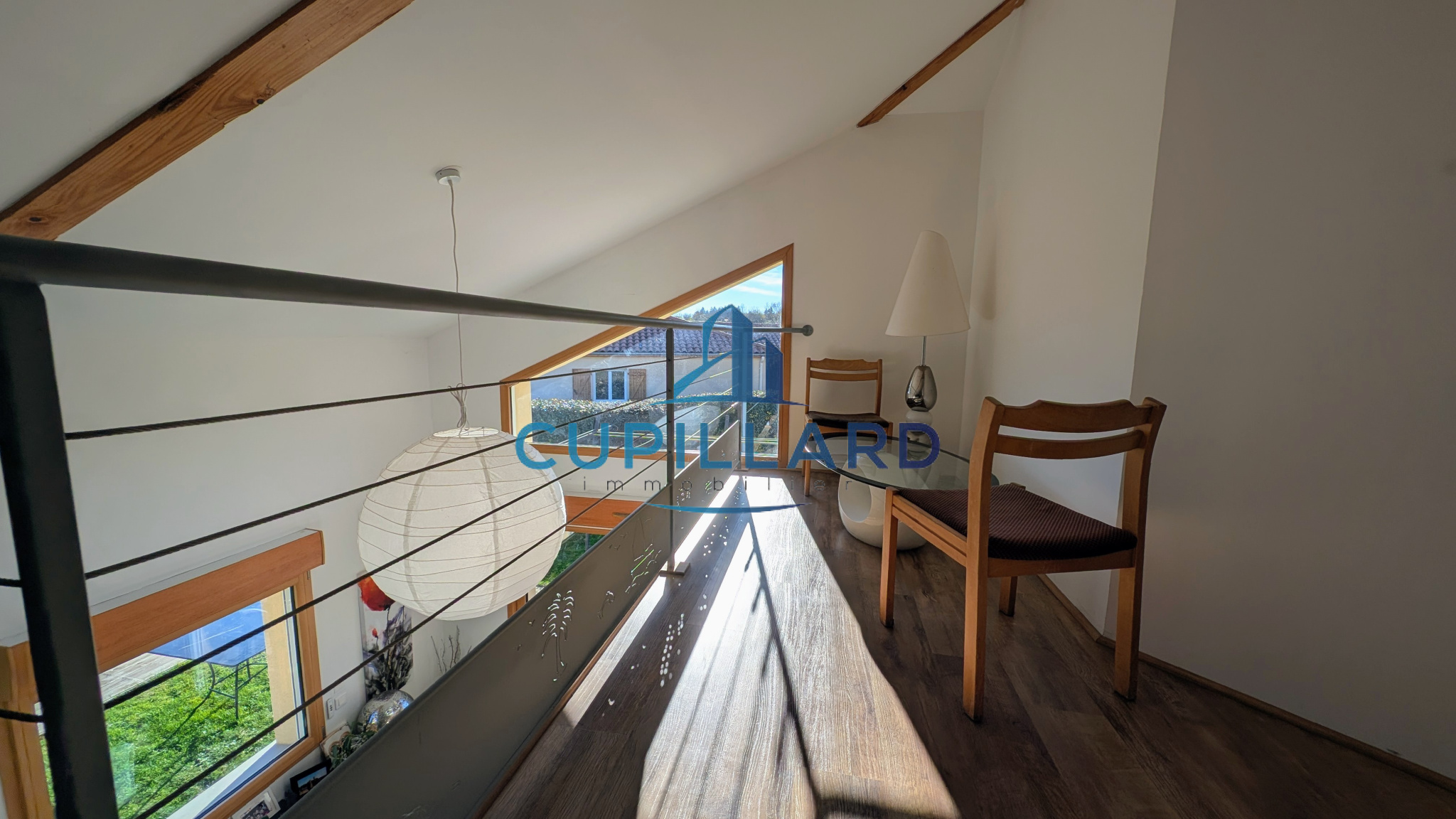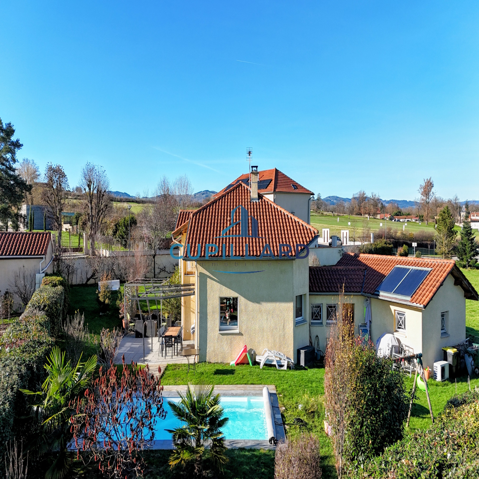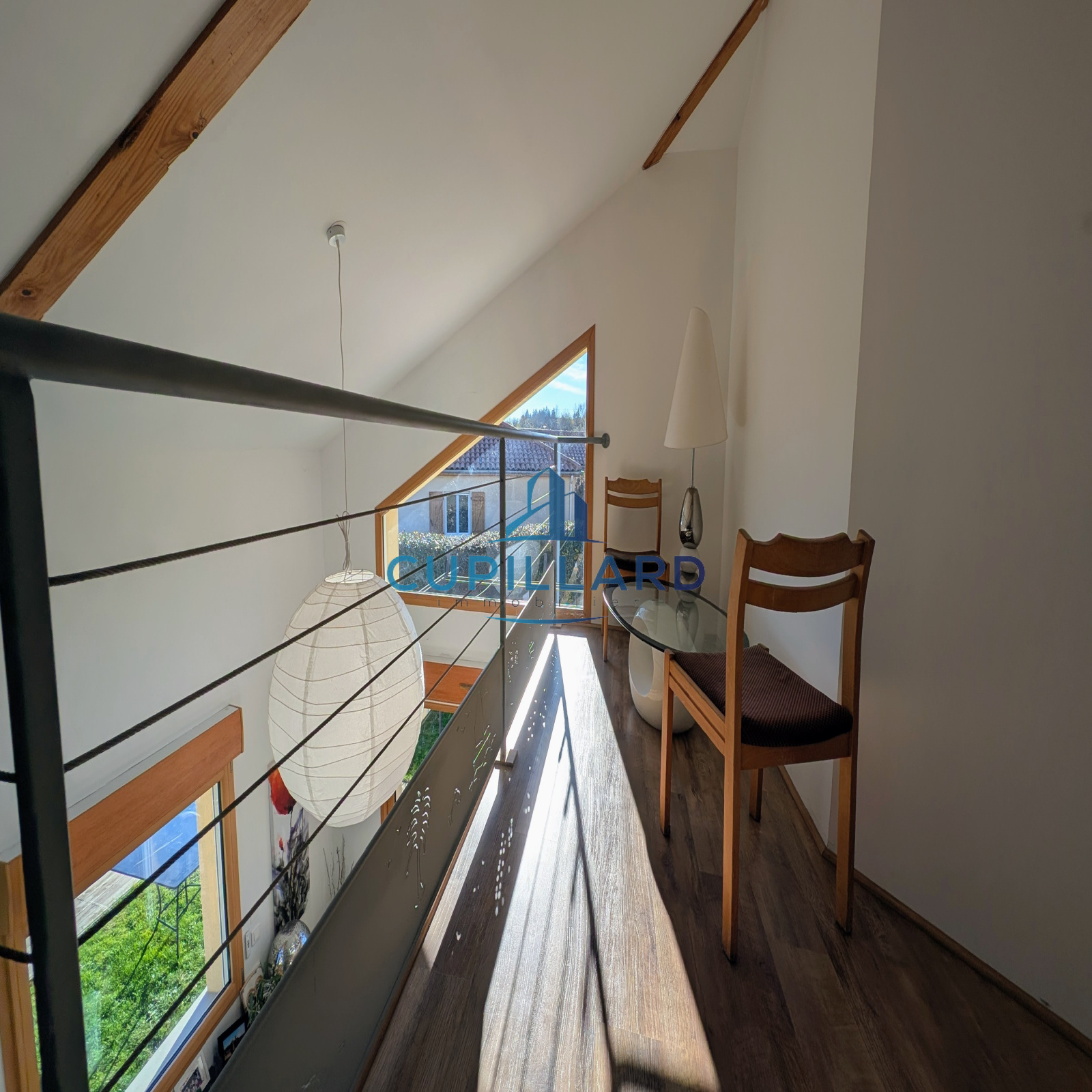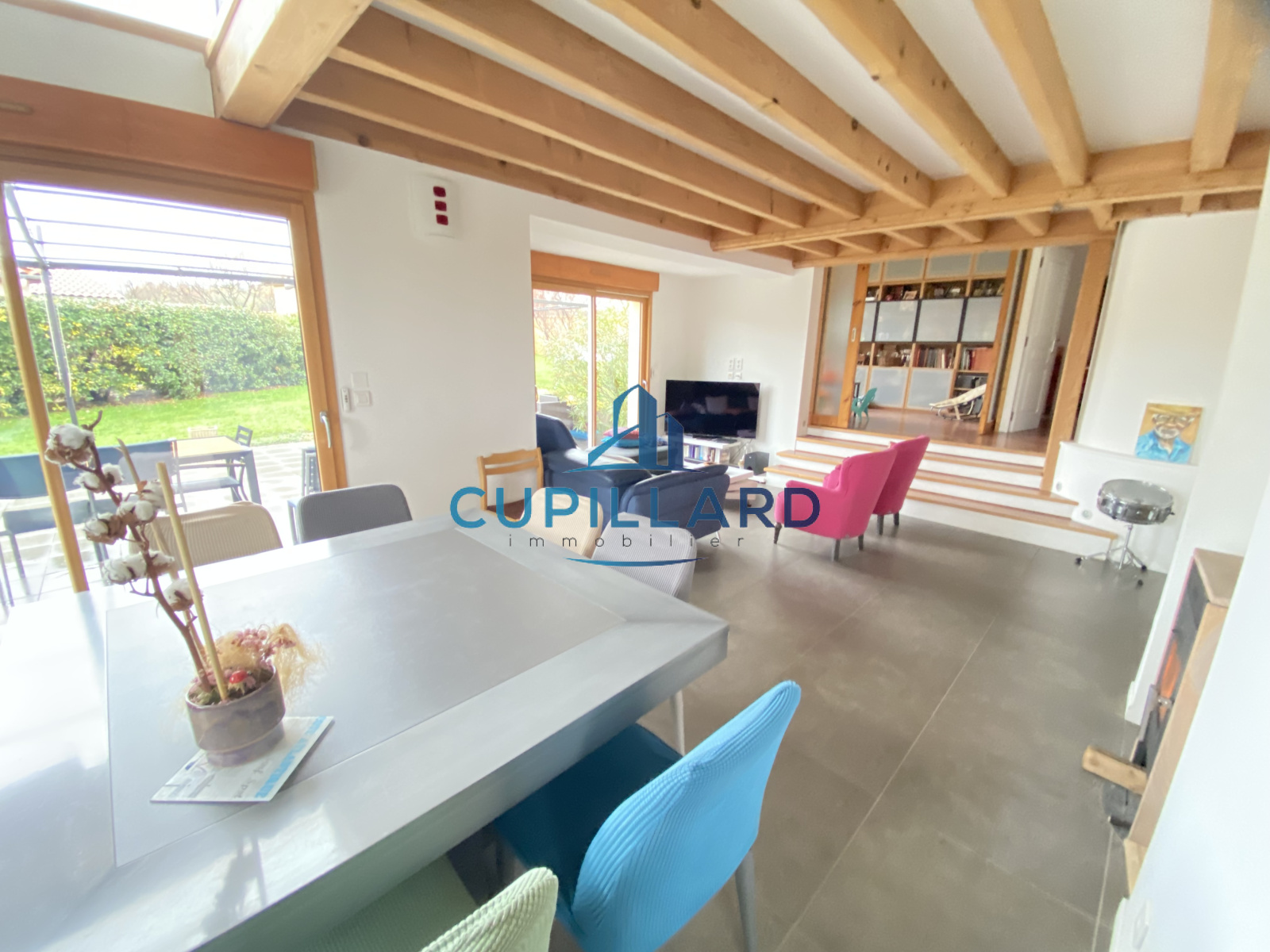 L'agence CUPILLARD vous propose en EXCLUSIVITE sur la commune de Villerest, cette superbe maison d’architecte de 148m², un bien rare mêlant volumes généreux, luminosité et prestations de qualité. Dès l’entrée, la pièce de vie spacieuse avec cuisine équipée ouverte, séjour/salon et poêle à bois crée une atmosphère chaleureuse et contemporaine. La bibliothèque indépendante fermée par des portes coulissantes, ainsi que la mezzanine avec un espace bureau apportent charme et fonctionnalité. Côté nuit, vous profiterez de 4 chambres confortables, d’une salle de bains avec douche et baignoire balnéo, ainsi que d’une salle d’eau à l’étage. Implantée sur un magnifique terrain clos et arboré de 2 465m², la propriété offre une piscine chauffée de 3,5 x 7 m, parfaite pour profiter des beaux jours en toute intimité. Garage avec coin buanderie en complément. Une maison de caractère, idéale pour une famille recherchant confort, tranquillité et cadre de vie privilégié.