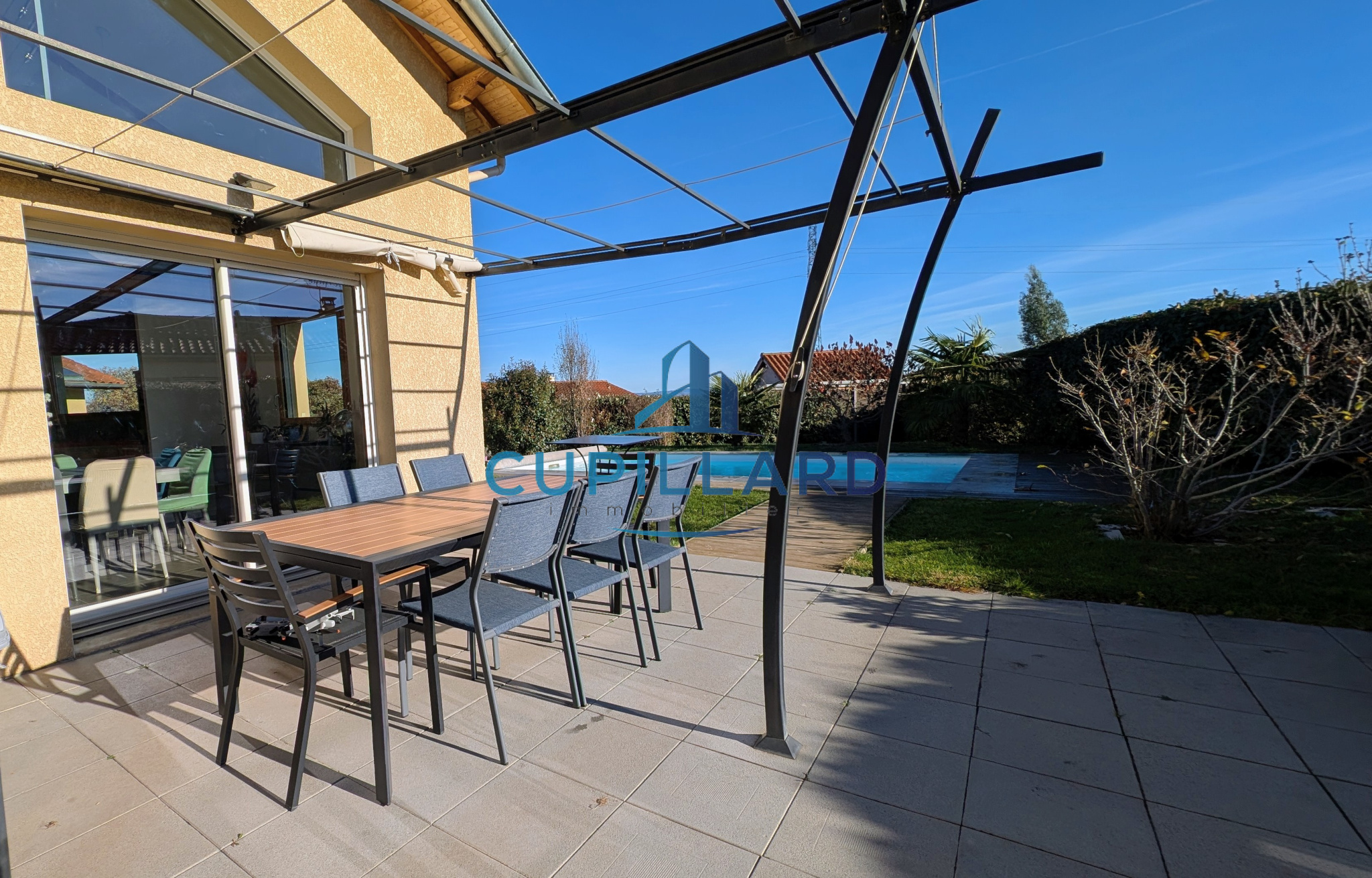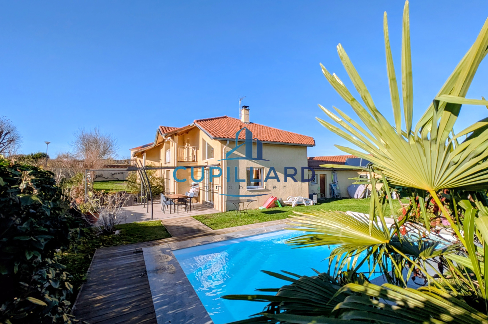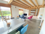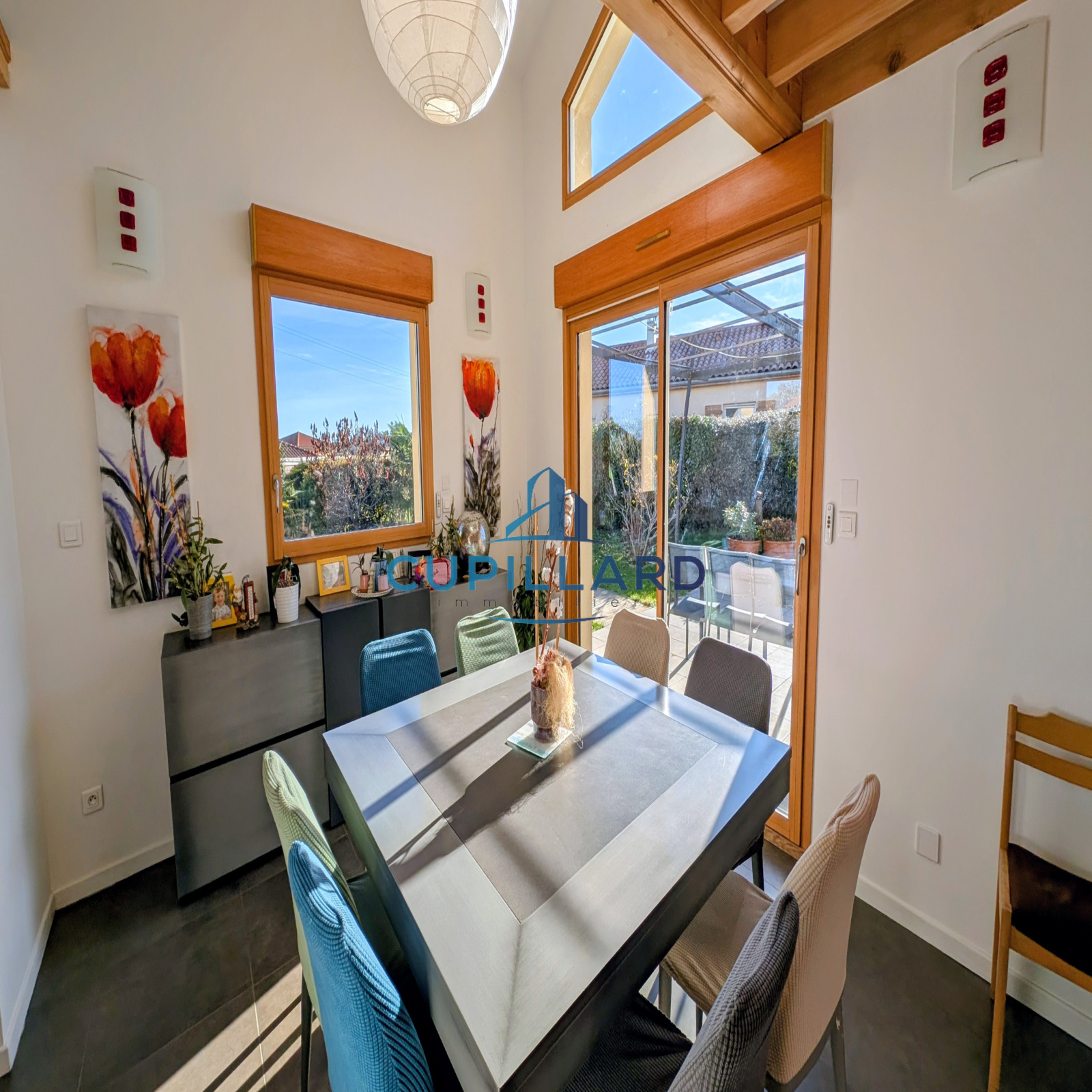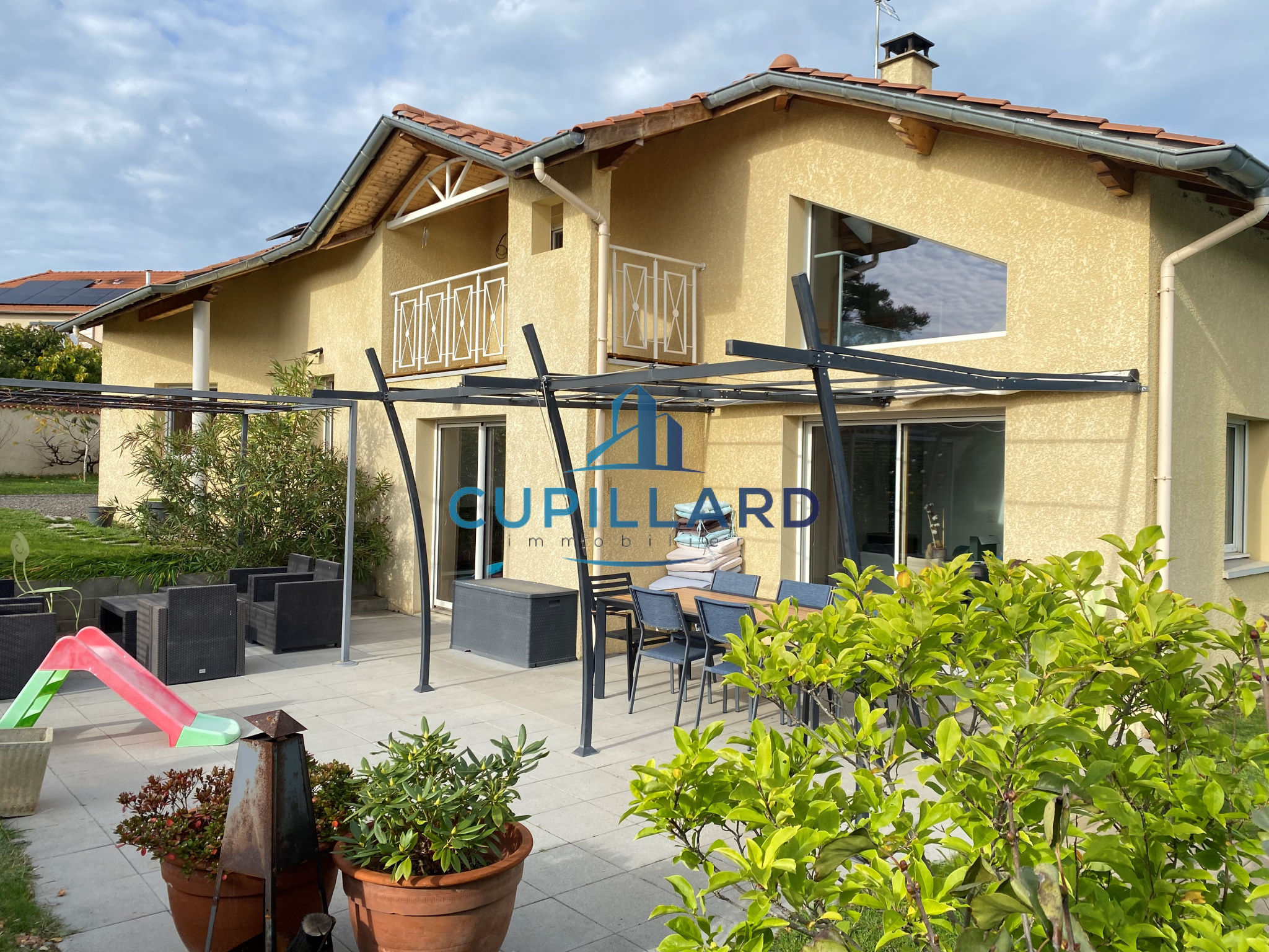 L'agence CUPILLARD vous propose en EXCLUSIVITE sur la commune de Villerest, cette superbe maison d’architecte de 148m², un bien rare mêlant volumes généreux, luminosité et prestations de qualité. Dès l’entrée, la pièce de vie spacieuse avec cuisine équipée ouverte, séjour/salon et poêle à bois crée une atmosphère chaleureuse et contemporaine. La bibliothèque indépendante fermée par des portes coulissantes, ainsi que la mezzanine avec un espace bureau apportent charme et fonctionnalité. Côté nuit, vous profiterez de 4 chambres confortables, d’une salle de bains avec douche et baignoire balnéo, ainsi que d’une salle d’eau à l’étage. Implantée sur un magnifique terrain clos et arboré de 2 465m², la propriété offre une piscine chauffée de 3,5 x 7 m, parfaite pour profiter des beaux jours en toute intimité. Garage avec coin buanderie en complément. Une maison de caractère, idéale pour une famille recherchant confort, tranquillité et cadre de vie privilégié.