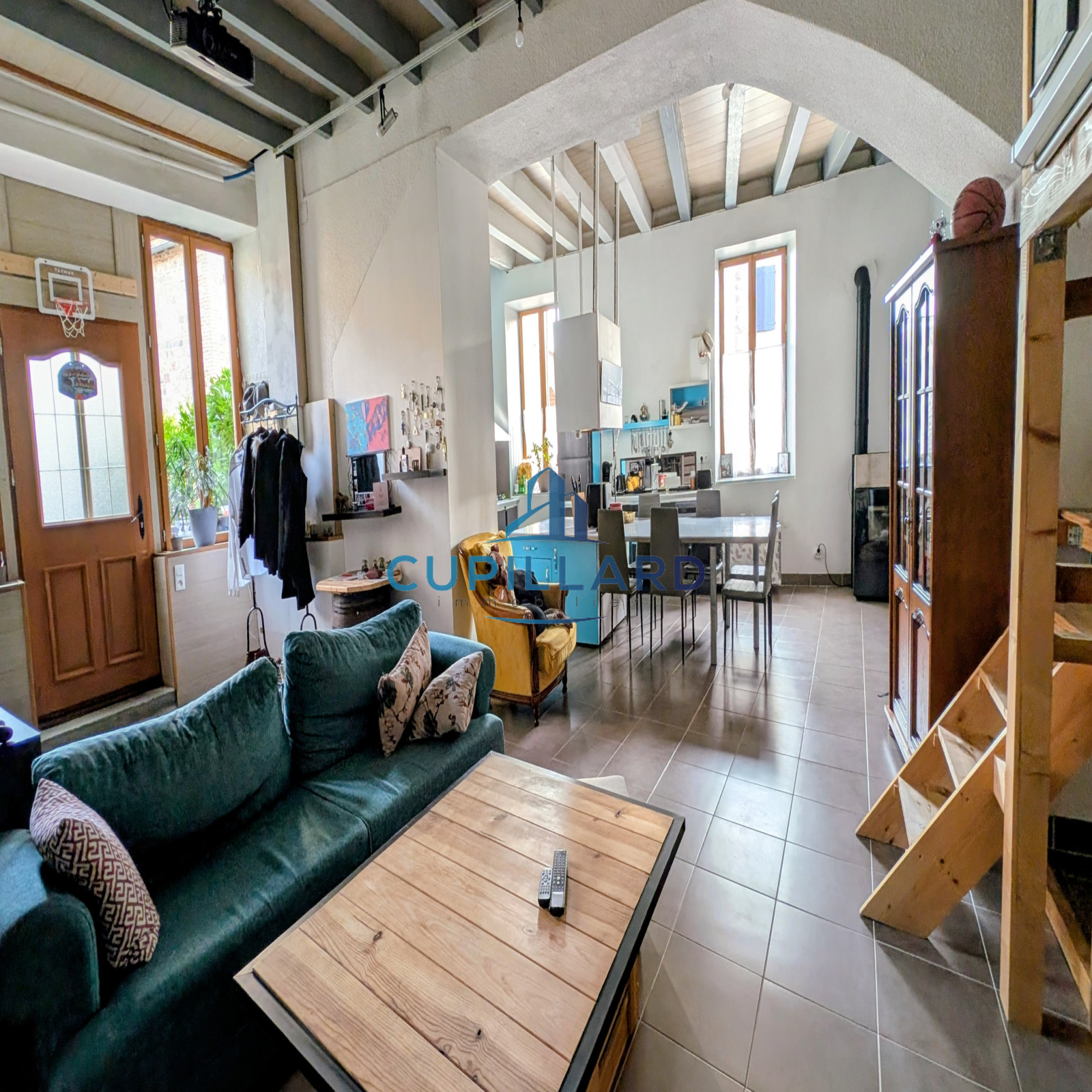 Exclusivité Villerest Bourg, maison familiale rénovée avec beaucoup de charme. Cuisine ouverte sur une grande pièce de vie, 3 belles chambres + bureau. Salle d'eau moderne, 2 WC. Cour privative, combles aménageables. Chauffage pompe à chaleur, climatisation + poêle à granulés. Rare à la vente.