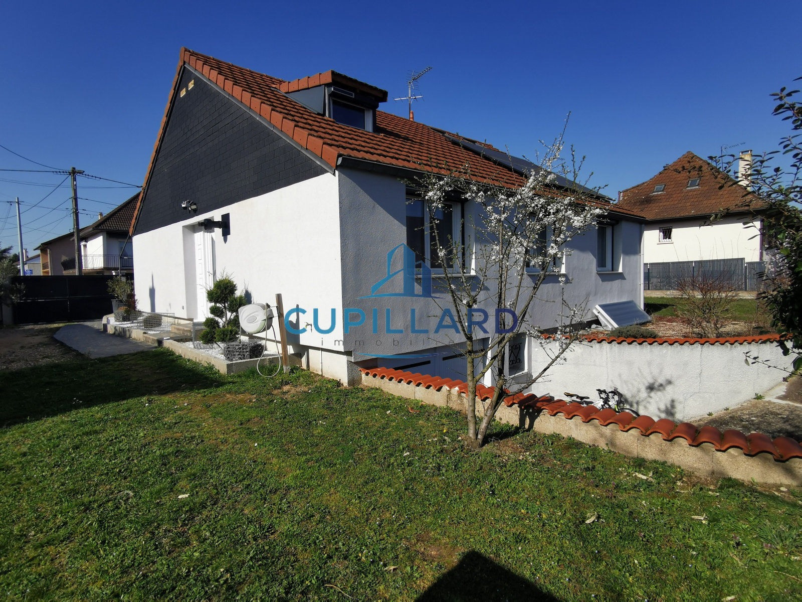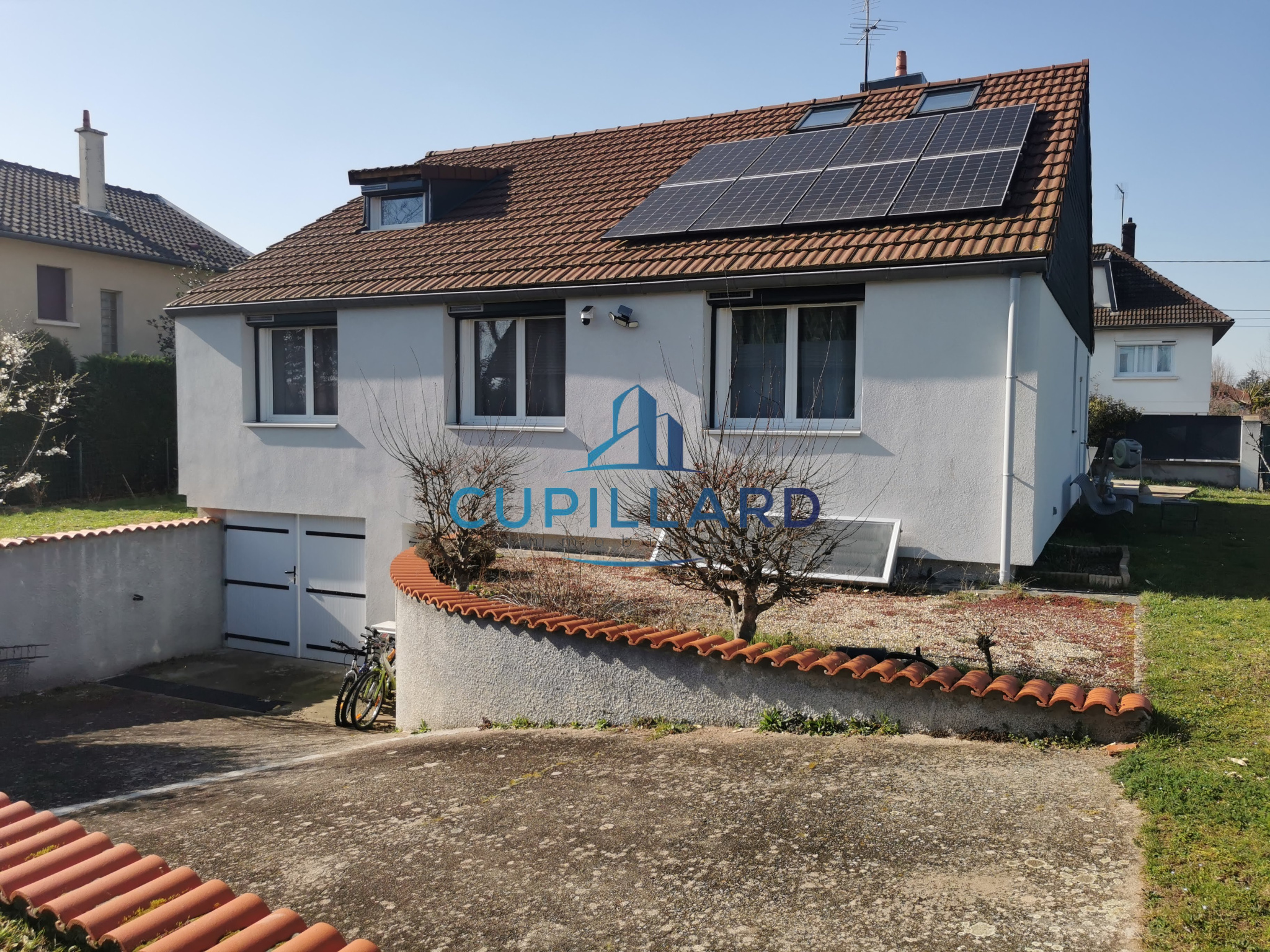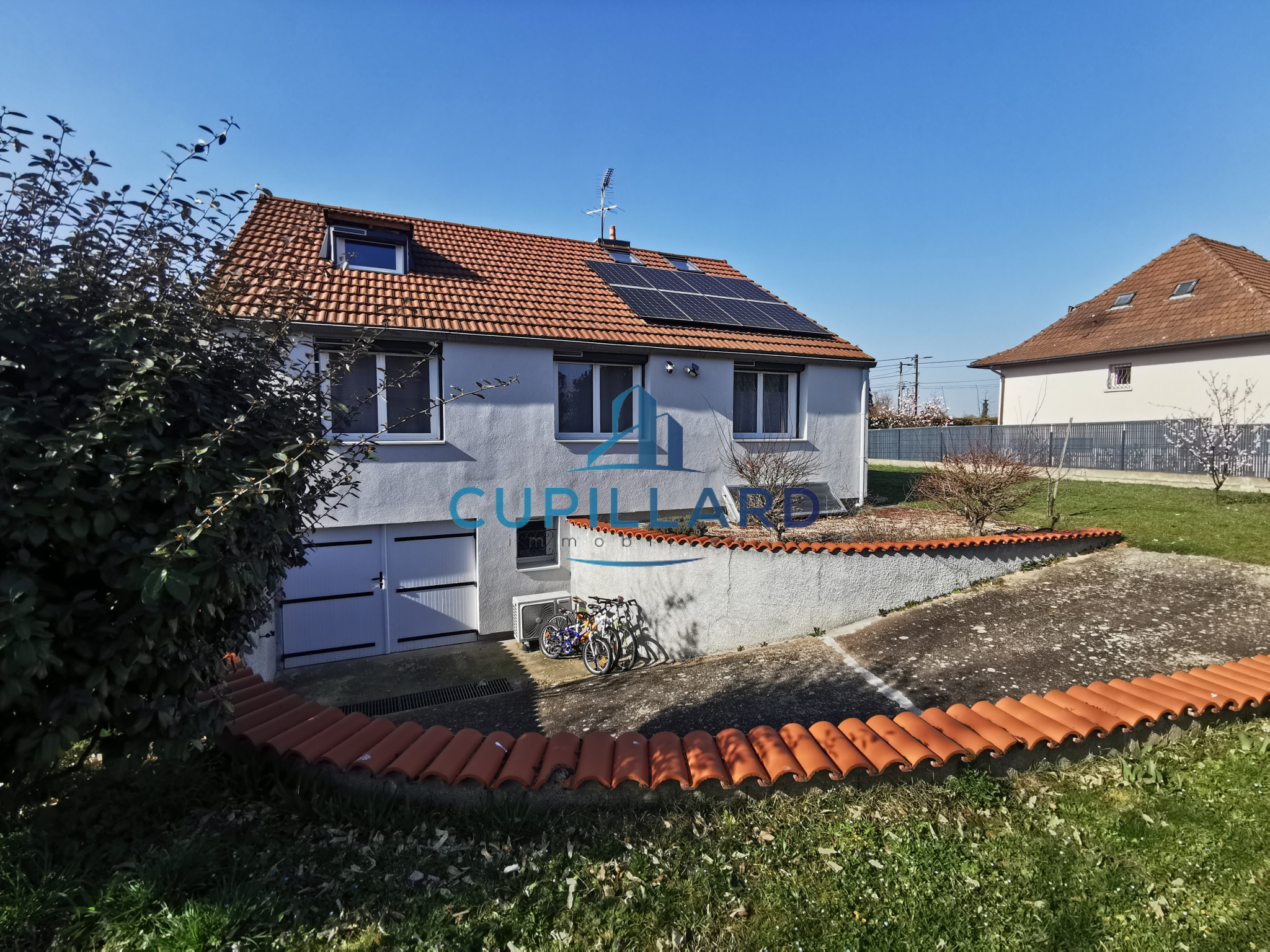 La maison est équipée de panneaux solaires installés en toiture, véritable atout pour la maîtrise des consommations énergétiques.
