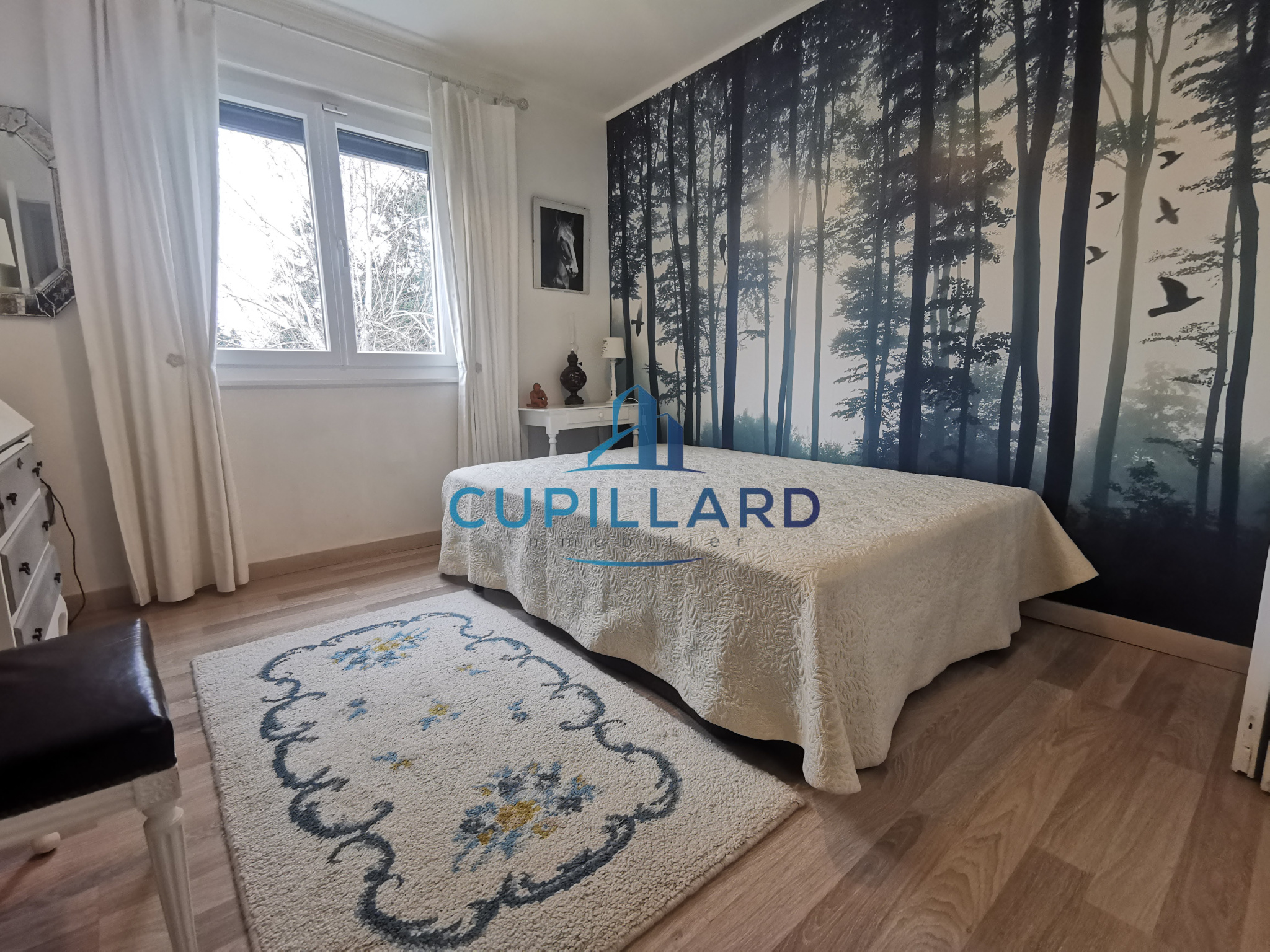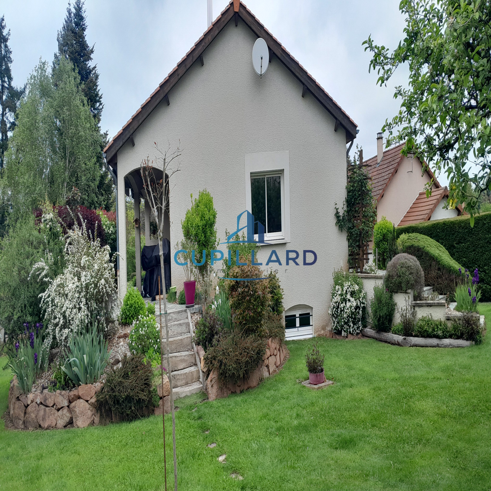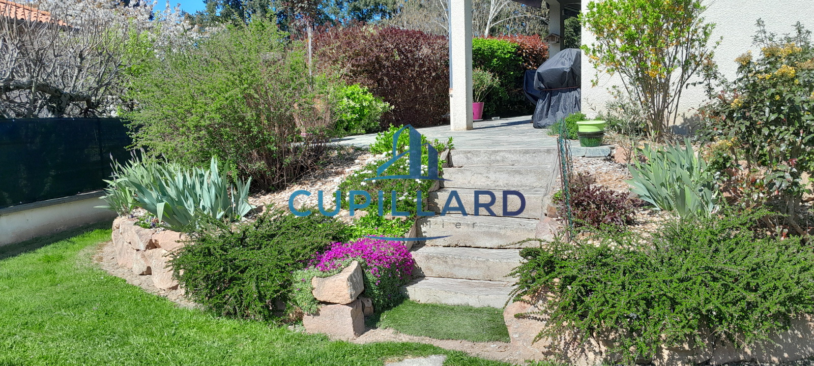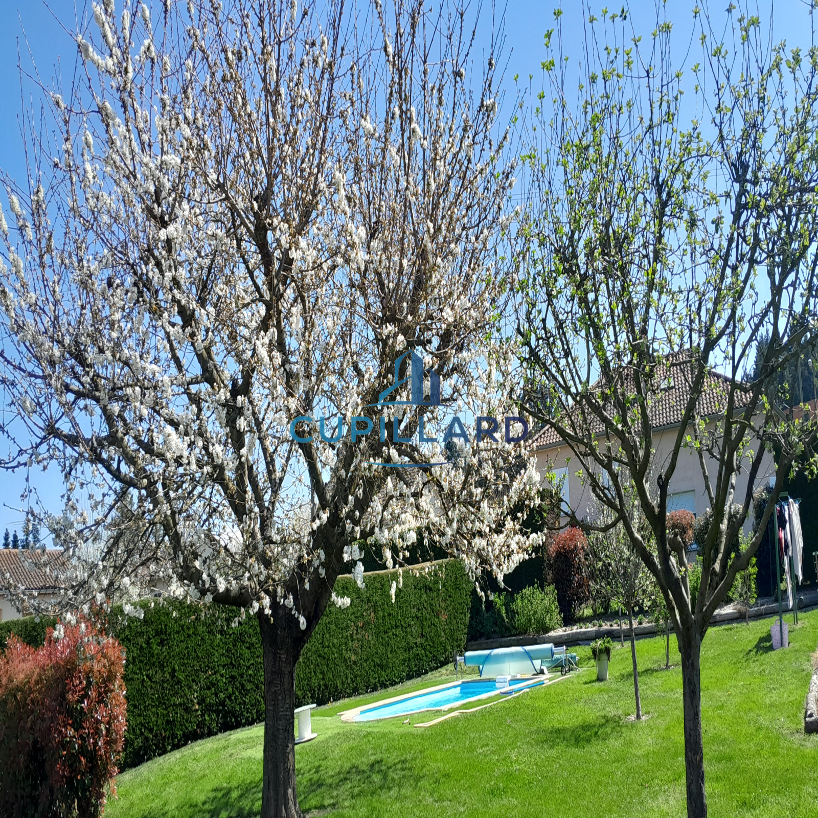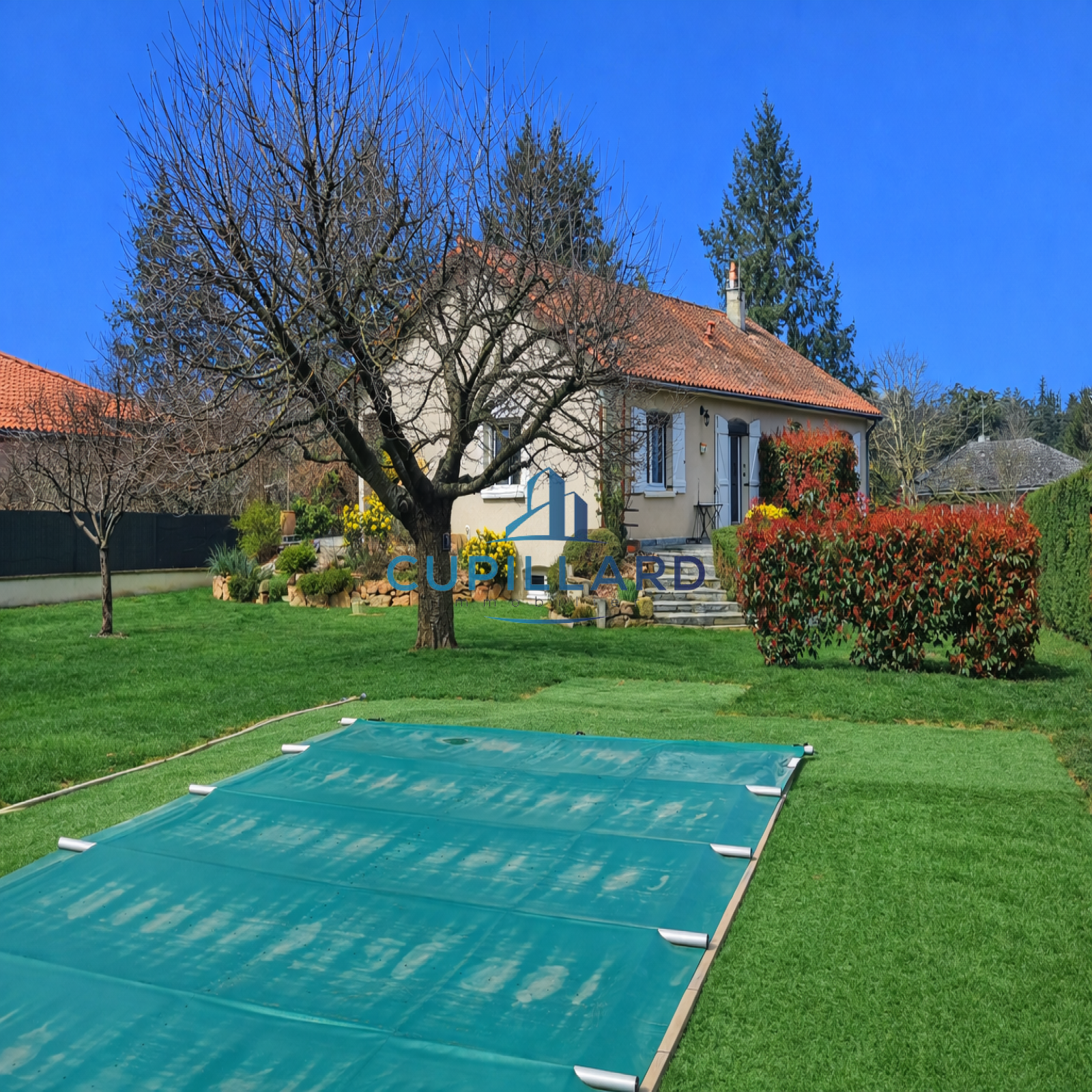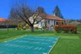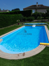 Édifiée sur un terrain clos et arboré de 1 417 m², elle offre un extérieur soigné avec piscine, idéal pour profiter des beaux jours en toute tranquillité.