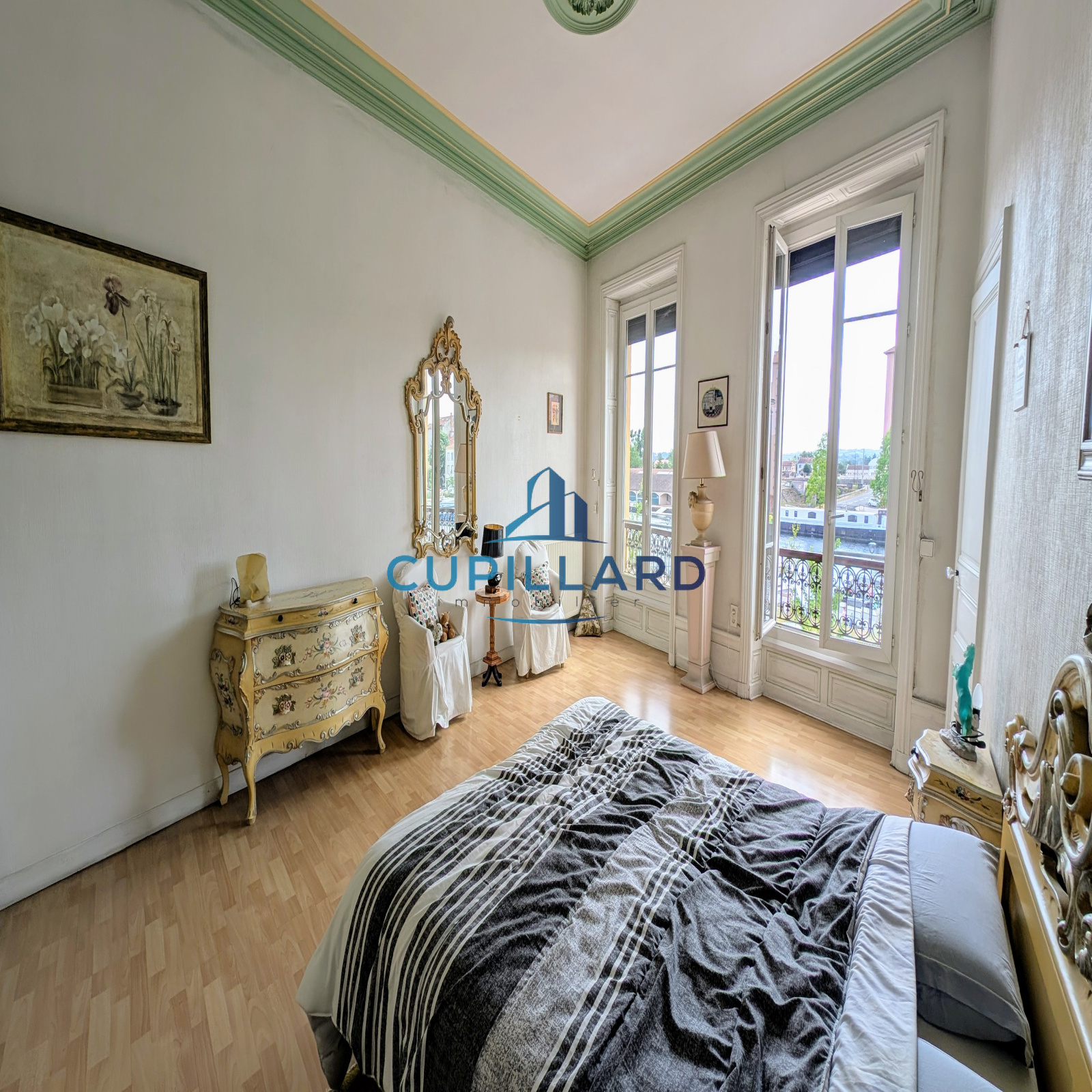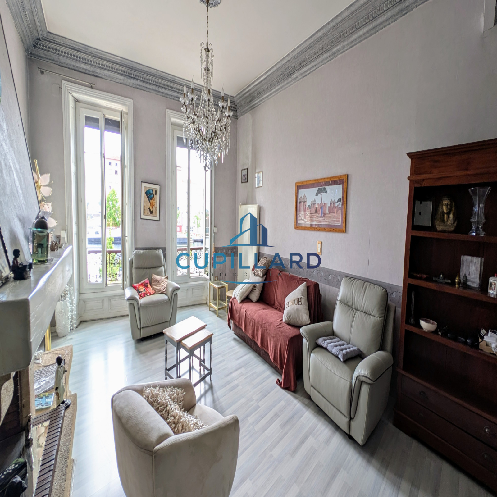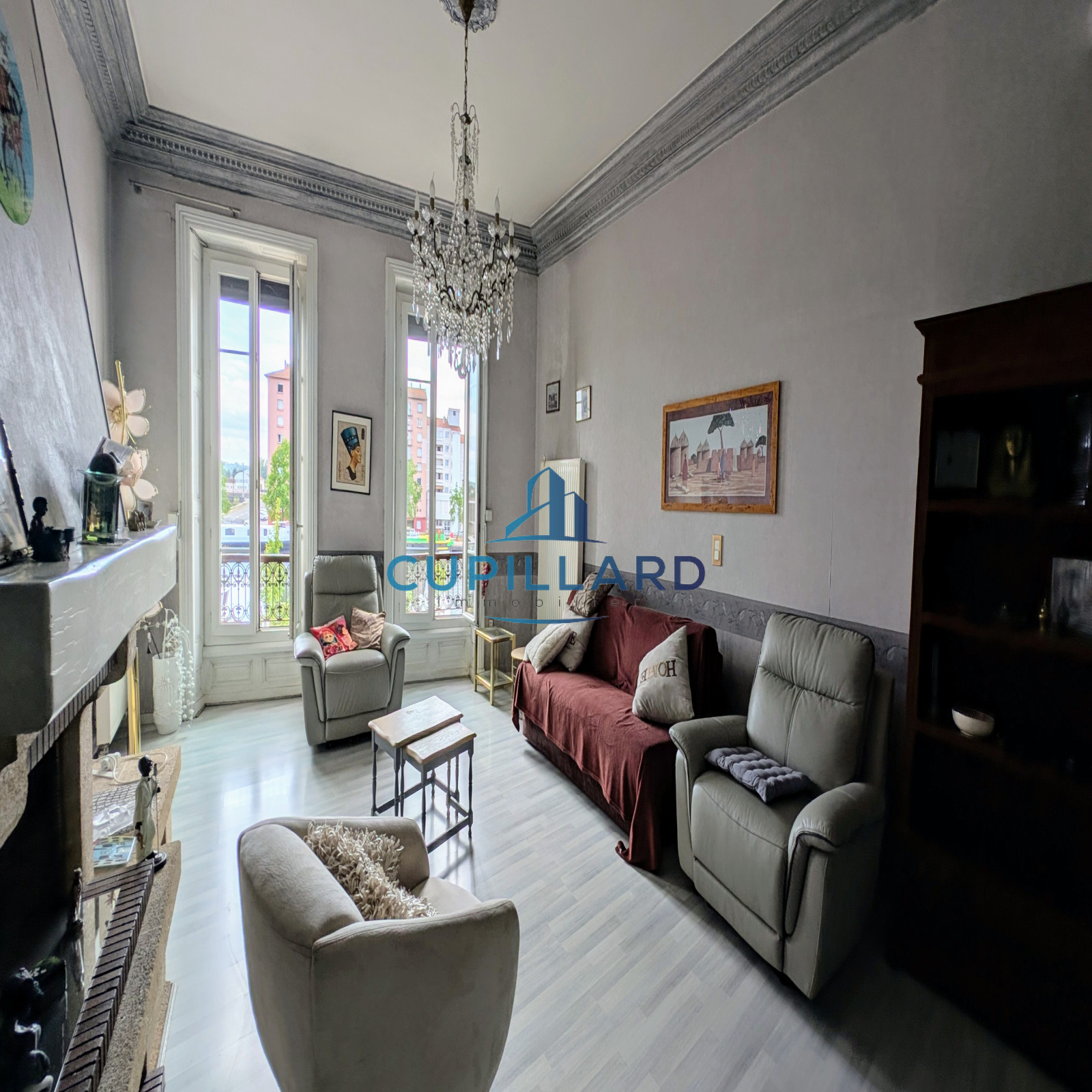 En exclusivité, appartement avec beaucoup de charme, vue dégagée sur le port de Roanne. 1er étage avec acsenseur d'une petite copropriété. Pièce de vie lumineuse avec cheminée, salle d'eau et wc séparés, cuisnie indépendante équipée, grande chambre avec dressing. Dépendance aménagée en RDC, cave et grand garage.