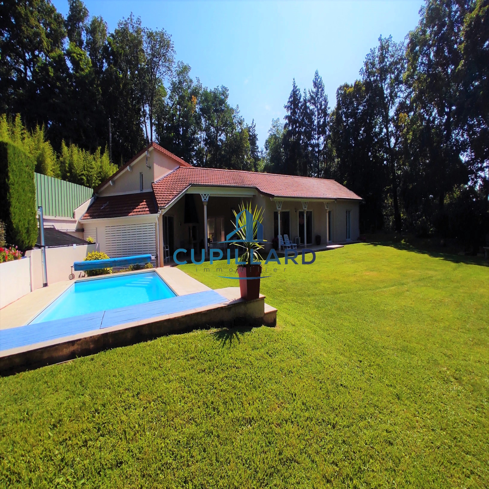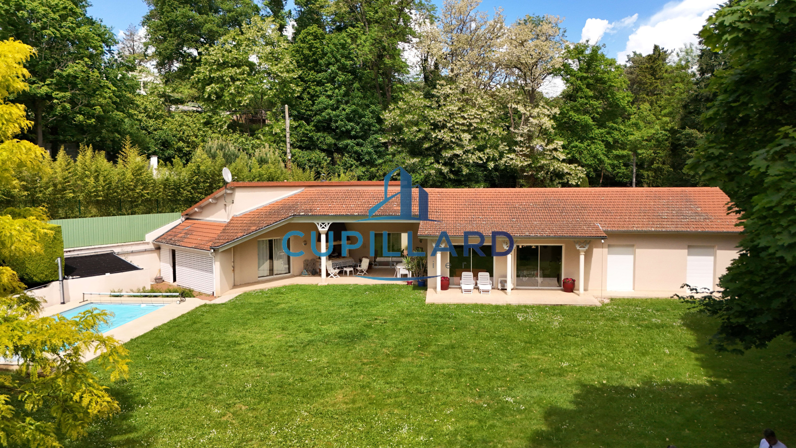 Sur la commune de Riorges, emplacement n°1 et aucun vis à vis pour cette villa d'architecte de plain-pied en parfait état avec terrain paysagé clos et piscine chauffée. Cuisine équipée avec grand cellier, semi-ouverte sur vaste pièce de vie qui donne sur une grande terrasse abritée et sur le parc. Trois belles chambres (possibilité plus), salle de bains, salle d'eau, nombreux rangements. Construction de qualité et belles prestations : chauffage au sol, climatisation, parquets massifs... Un grand garage, une cave et un grenier aménageable complètent ce bien rare.