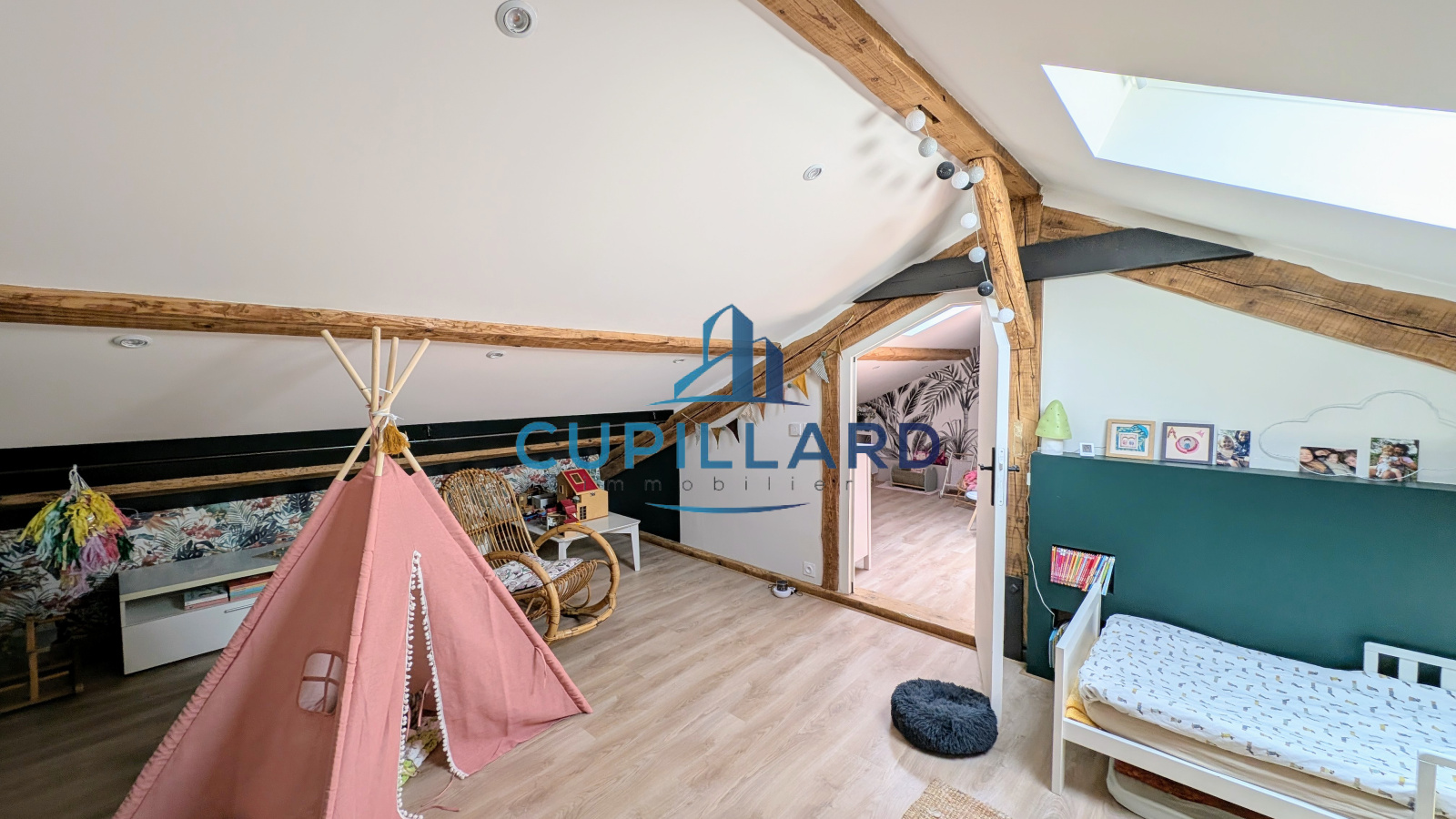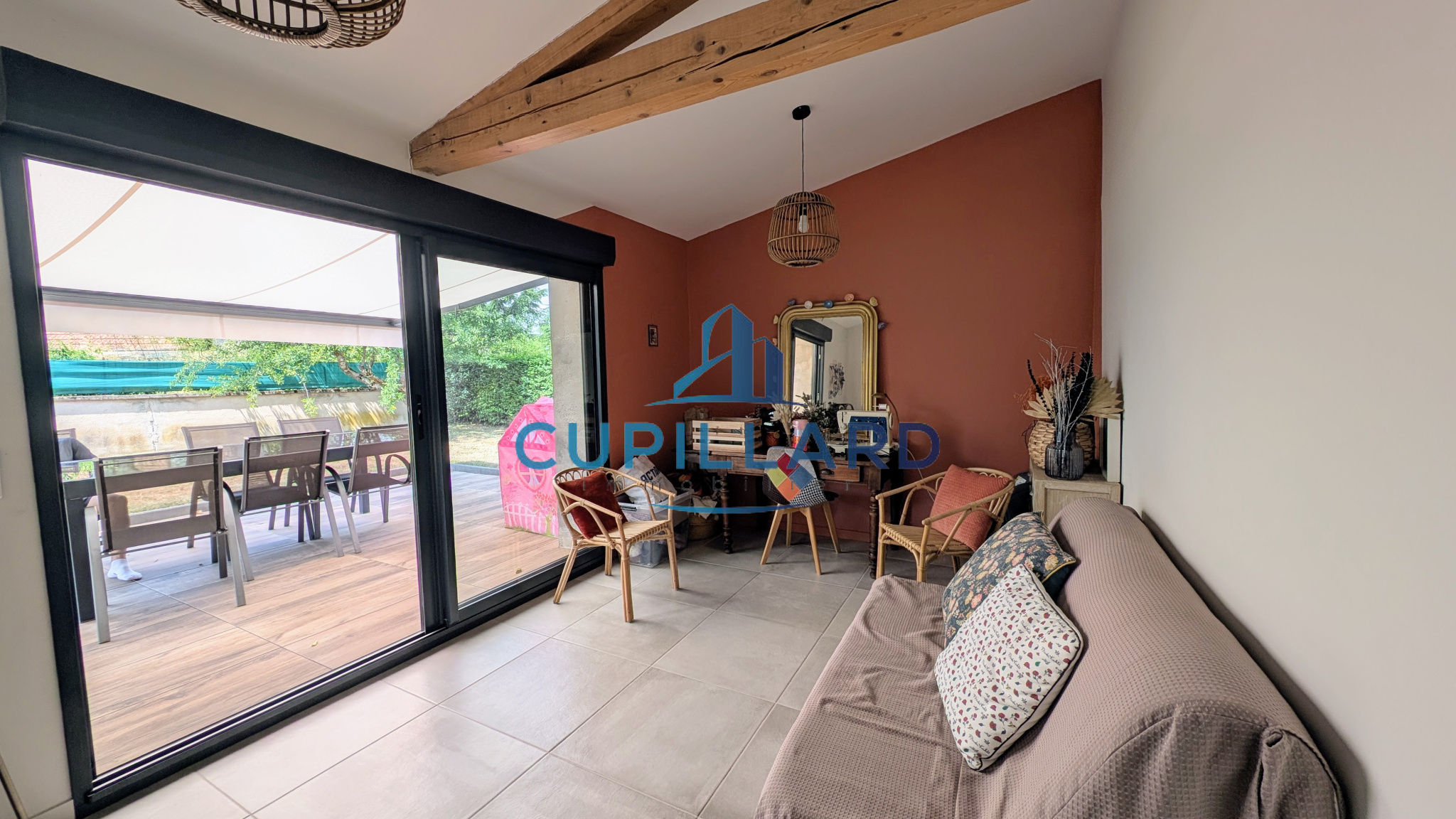 Exclusivité RIORGES. Dans une rue calme, proche des commodités. Maison des années 50 entièrement rénovée avec goût et matériaux de qualité. Cuisine ouverte sur une grande pièce de vie, 3 chambres dont une suite parentale. salle de bains moderne, 2 wc séparés. Buanderie, bureau, grand garage. Prestations de qualité, aucun travaux à prévoir. Terrain clos et arboré, sans vis à vis.