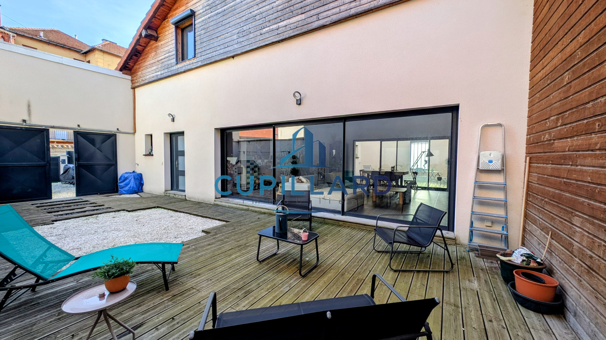 Exclusivité Roanne proche gare, maison récente type loft en parfait état. Cuisine équipée ouverte sur une très belle pièce à vivre donnant sur 2 terrasses sans vis à vis. 3 chambres dont 1 suite parentale en RDC, 1 salle de bains et 1 salle d'eau, 2 wc, mezzanine. Proche toutes commodités, beaucoup de charme, belles prestations. A voir rapidement.