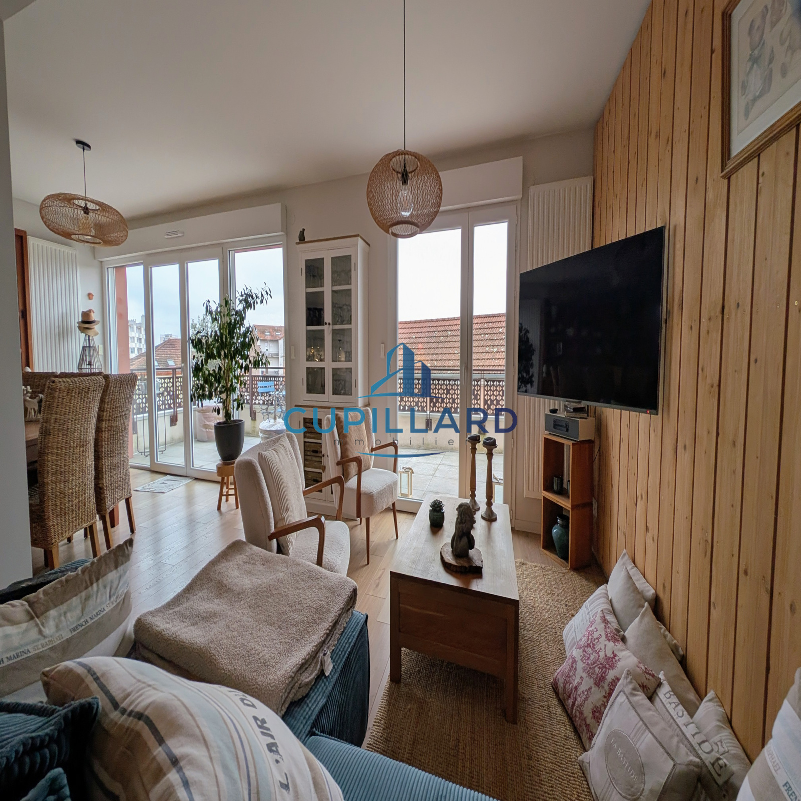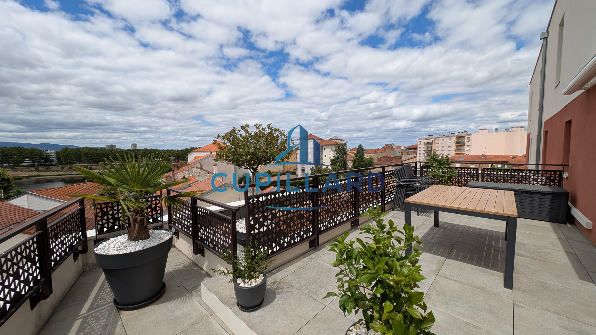 Résidence récente, appartement offrant 100m², avec terrasse avec vue sur la Loire. Pièce de vie lumineuse, deux belles chambres, salle d'eau moderne. 4ème étage avec ascenseur, garage. Prestations de qualité, climatisation. Faibles charges. Rare à la vente !